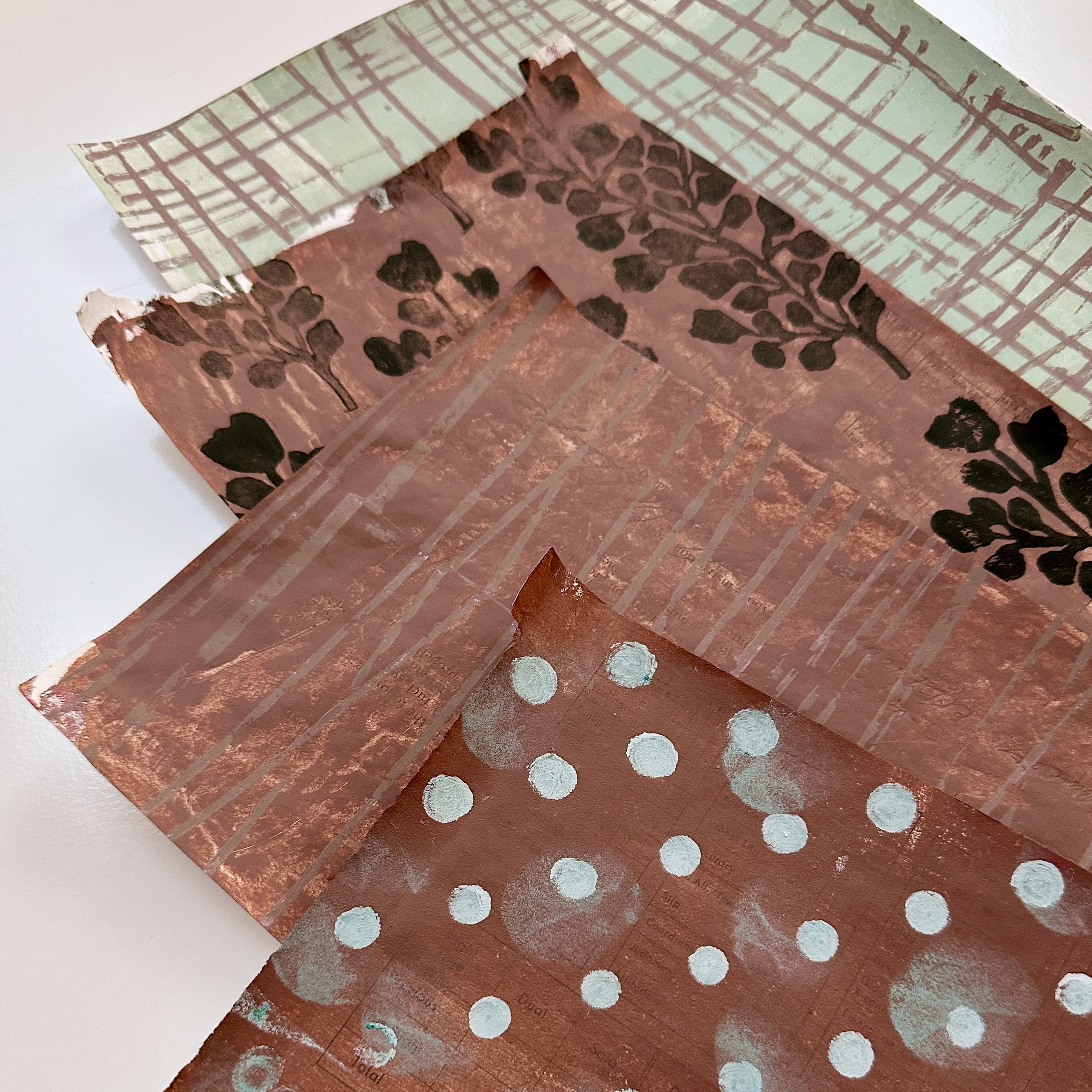 There was something deeply freeing about creating my own materials—painting papers, adding marks, layering texture, and turning ordinary scraps into expressive, beautiful building blocks.