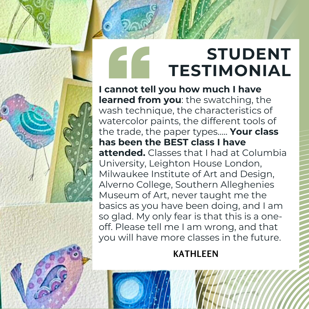 Karen has a lifelong passion for Watercolor, and has been teaching it for over 30 years. She has worked in the art supply industry for even longer, working in product development and education for Yasutomo, and becoming an ambassador for many other brands.