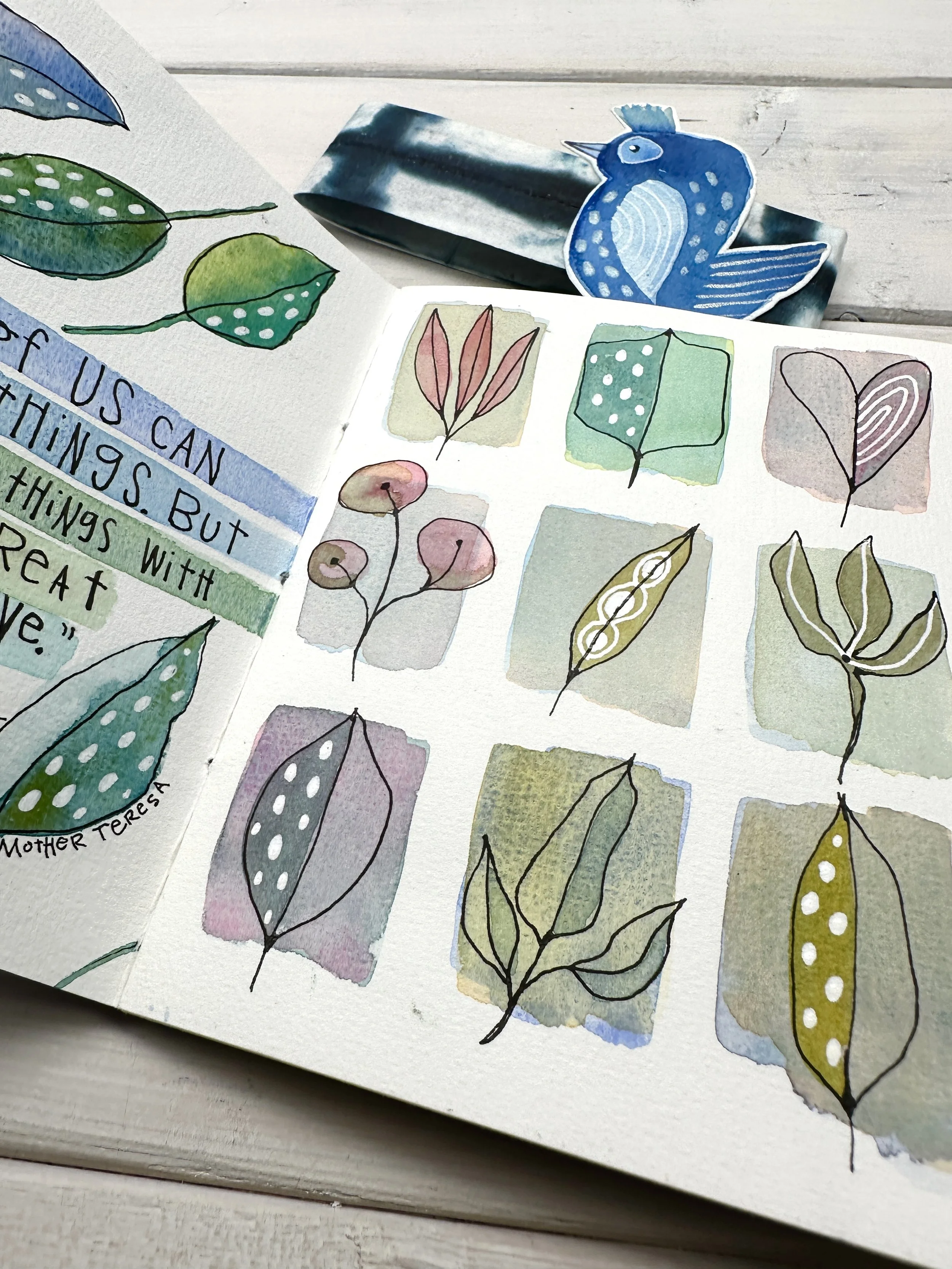 Bring your artistry to life by completing two handmade book projects, where your watercolors transform into treasured keepsakes.